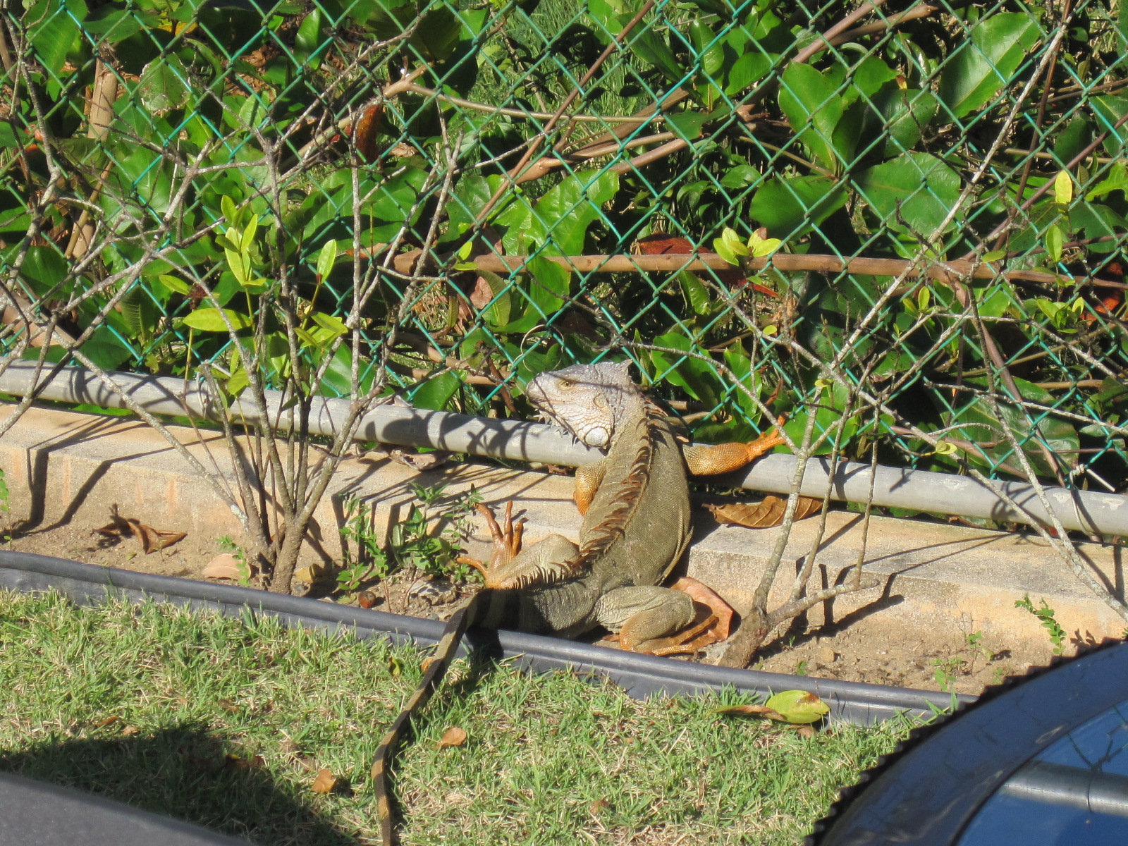 The next morning, my ears were still ringing. This iguana we found laying by the pool seemed to have the right idea.
